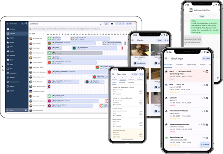 Gérez votre entreprise complète de location de vacances depuis votre téléphone. Accès complet à toutes les fonctionnalités : réservations, calendrier, messagerie, tâches, finances. Disponible sur iOS et Android.